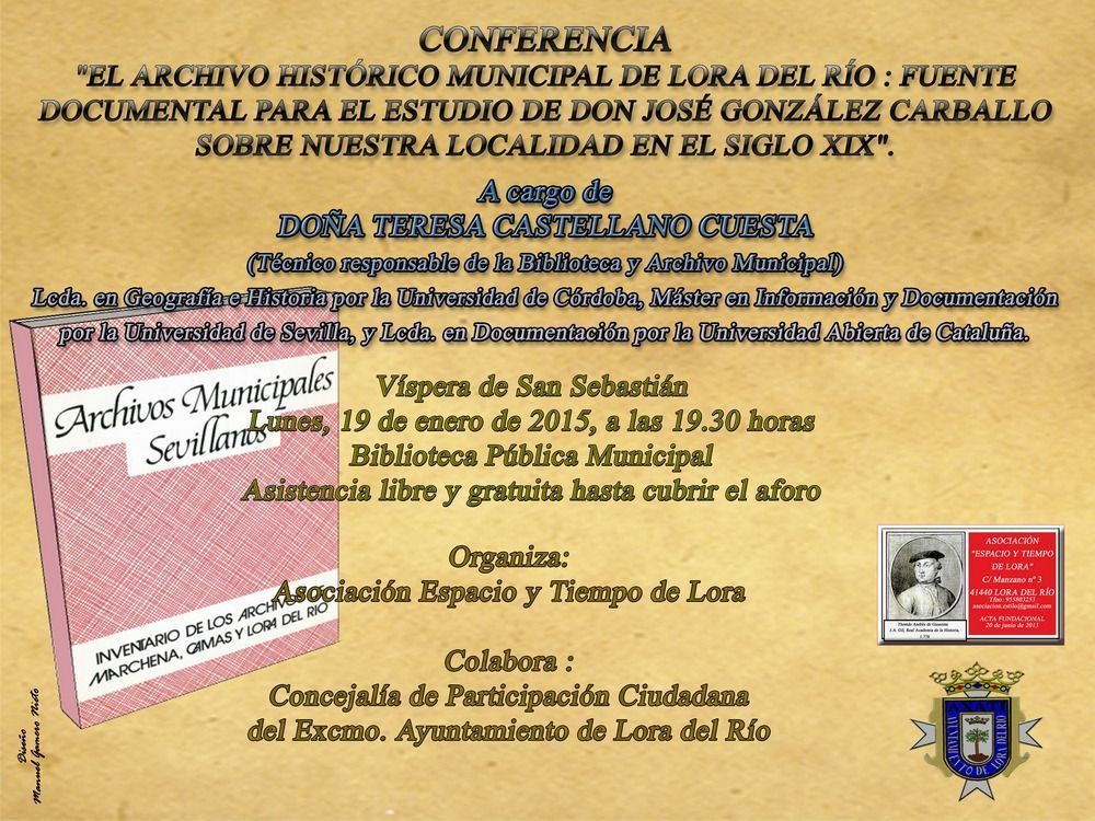 CONFERENCIA “EL ARCHIVO HISTÓRICO MUNICIPAL DE LORA DEL RÍO: FUENTE DOCUMENTAL PARA EL ESTUDIO DE DON JOSÉ GONZÁLEZ CARBALLO SOBRE NUESTRA LOCALIDAD EN EL SIGLO XIX”