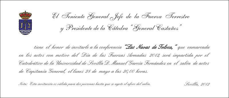 NUESTRO COMPAÑERO MANUEL GARCÍA FERNÁNDEZ, CATEDRÁTICO DE HISTORIA MEDIEVAL DE LA UNIVERSIDAD DE SEVILLA, IMPARTIRÁ LA CONFERENCIA “LAS NAVAS DE TOLOSA” EN EL SALÓN DE ACTOS DE CAPITANÍA GENERAL