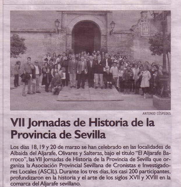 Las VII Jornadas de Historia sobre la Provincia de Sevilla dedicadas al Aljarafe Barroco se cierran con gran éxito de organización, participación y calidad de las ponencias y comunicaciones presentadas.