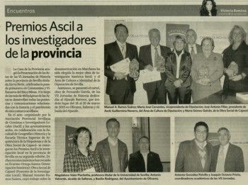 El próximo sábado, 20 de marzo la ASCIL, coincidiendo con la celebración de las VII Jornadas de Historia sobre la Provincia de Sevilla, presenta en Olivares, su Revista Anuario 2009 de Estudios Locales
